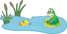 The frog hops out of the water and says, "Thank you fish. You made me happy."