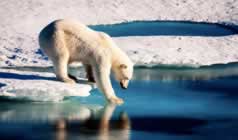 The polar bear is an example of an animal being affected by climate change. The Arctic is heating up twice as fast as the rest of the world. That causes the ice that polar bears depend on to melt away. No ice means no seals, the polar bear's main food. The bears must then look for other food sources, sometimes even scavenging for human food. This can lead to dangerous run-ins with people.