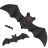Halloween decorations include pumpkins, bats and black cats.